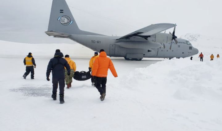 La lesión que sufrió en su antebrazo un miembro de la dotación argentina del territorio antártico obligó ayer a realizar una evacuación aeromédica
